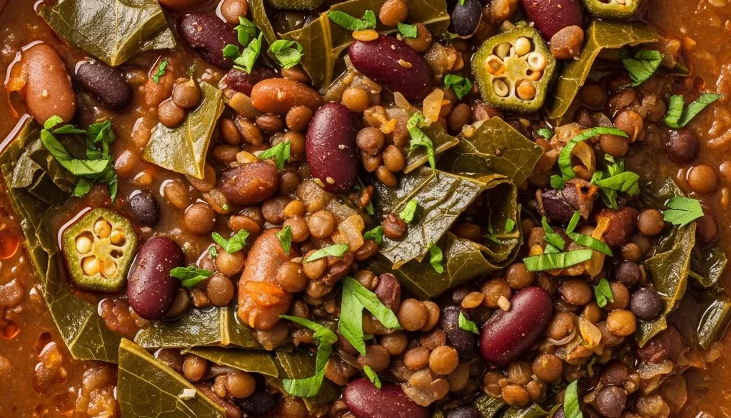 This stew marries the vibrant flavors of bold, spicy seasonings with the rustic heartiness of lentils and beans, creating a comforting dish that surprises with each spoonful. It’s a warm, hearty bowl perfect for when you’re craving something both nourishing and spirited.